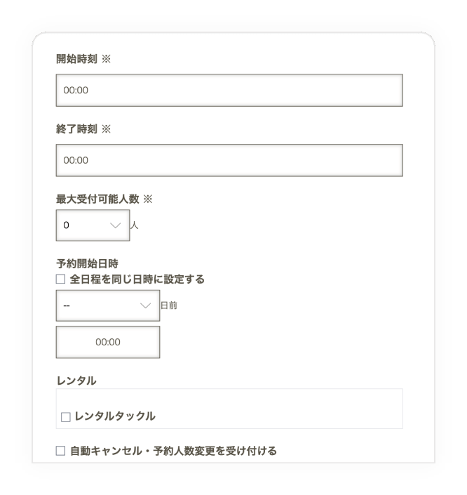 - 出船の設定や、開始、終了時間まで設定できますか?