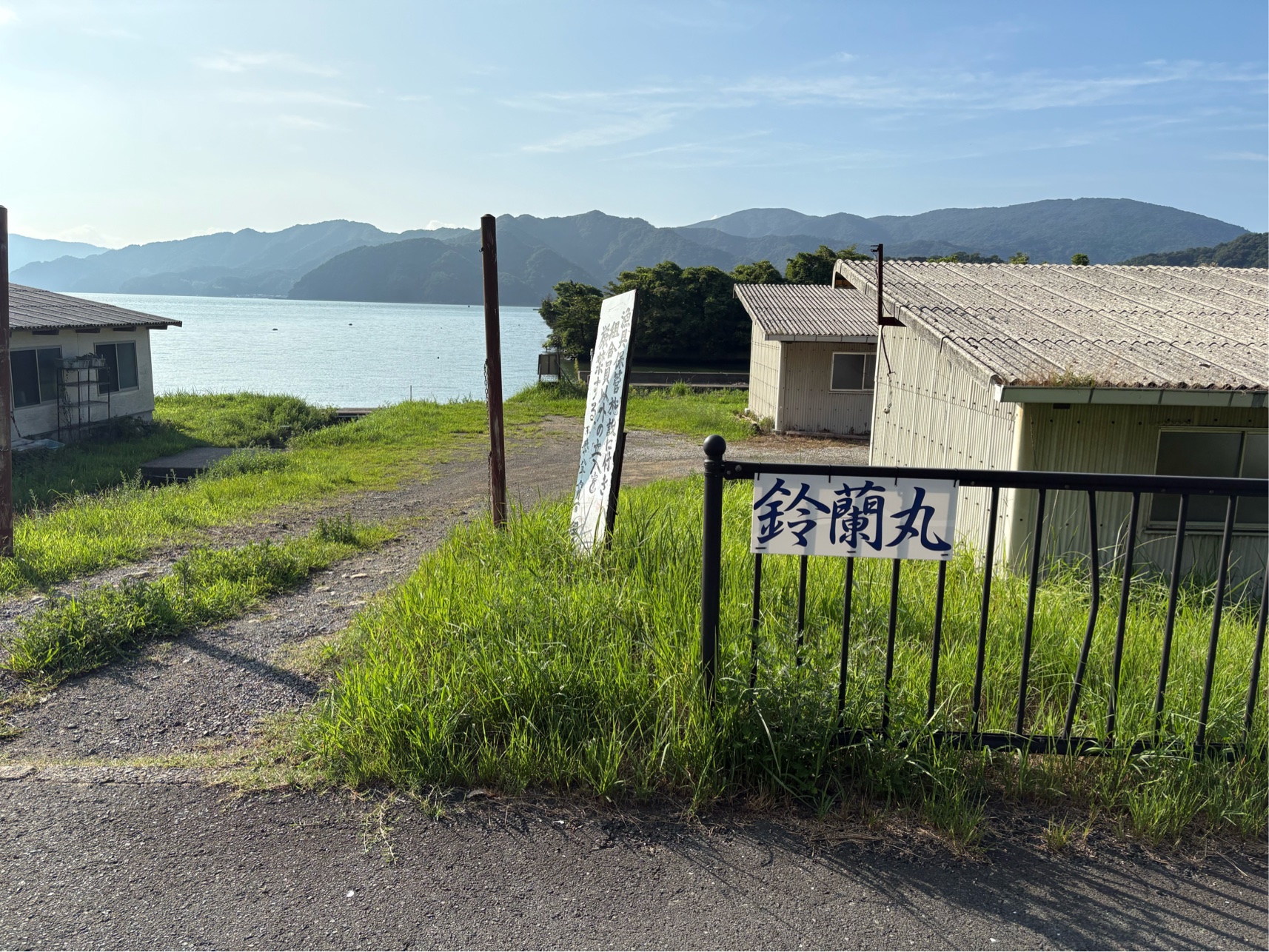 駐車場で釣り道具の準備をしてから、奥から海に出られる小道があるので、海に出るとすぐに鈴蘭丸が見えます。
