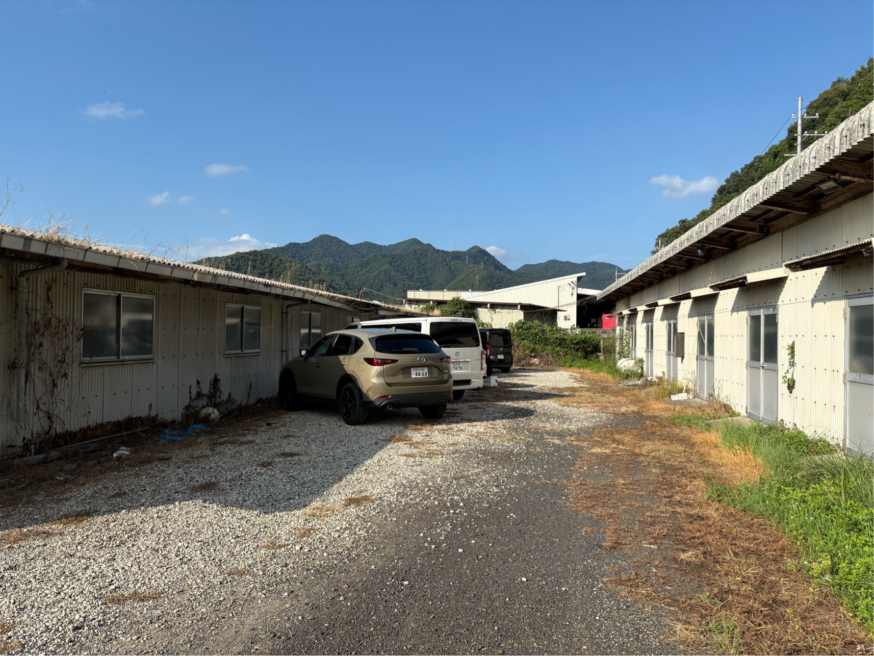 そこの左折し降りていくと建物と建物の間にスペースがあるので、奥から詰めて駐車します。