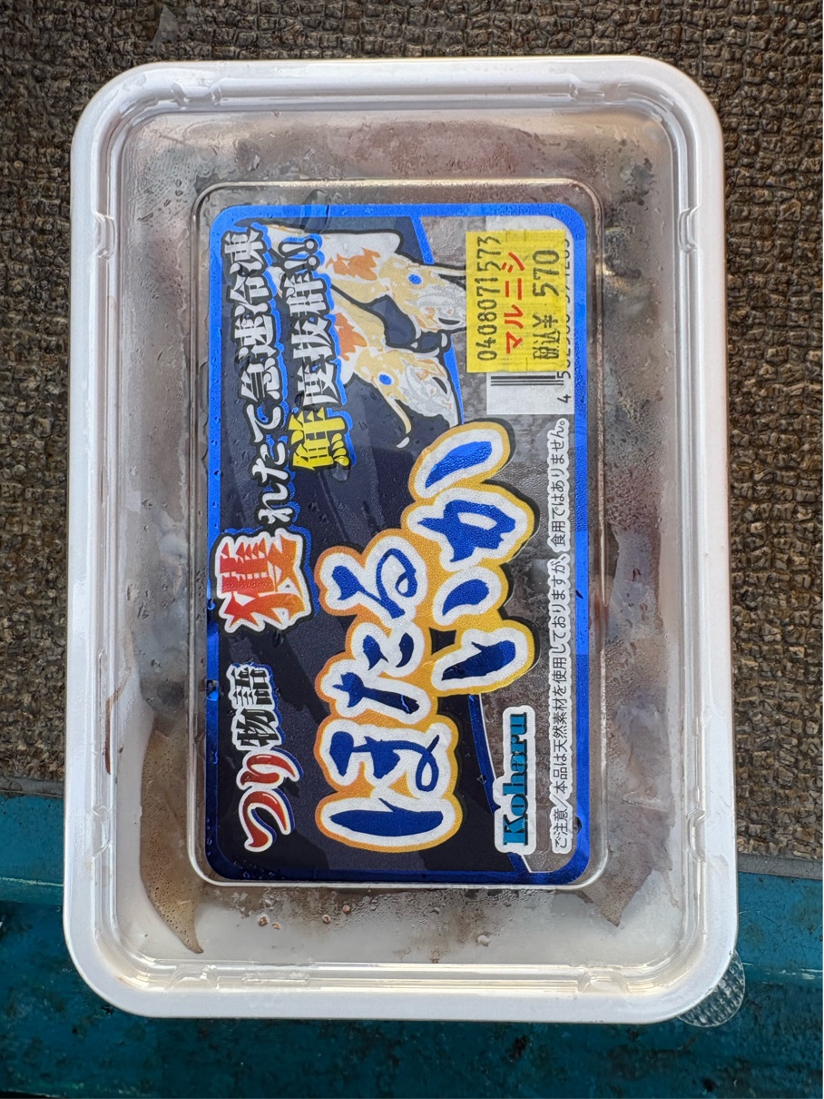 船長より事前にラインで考案リグと仕掛けを教えていただき、エサのホタルイカが必要なので、途中、釣具屋に寄りました!