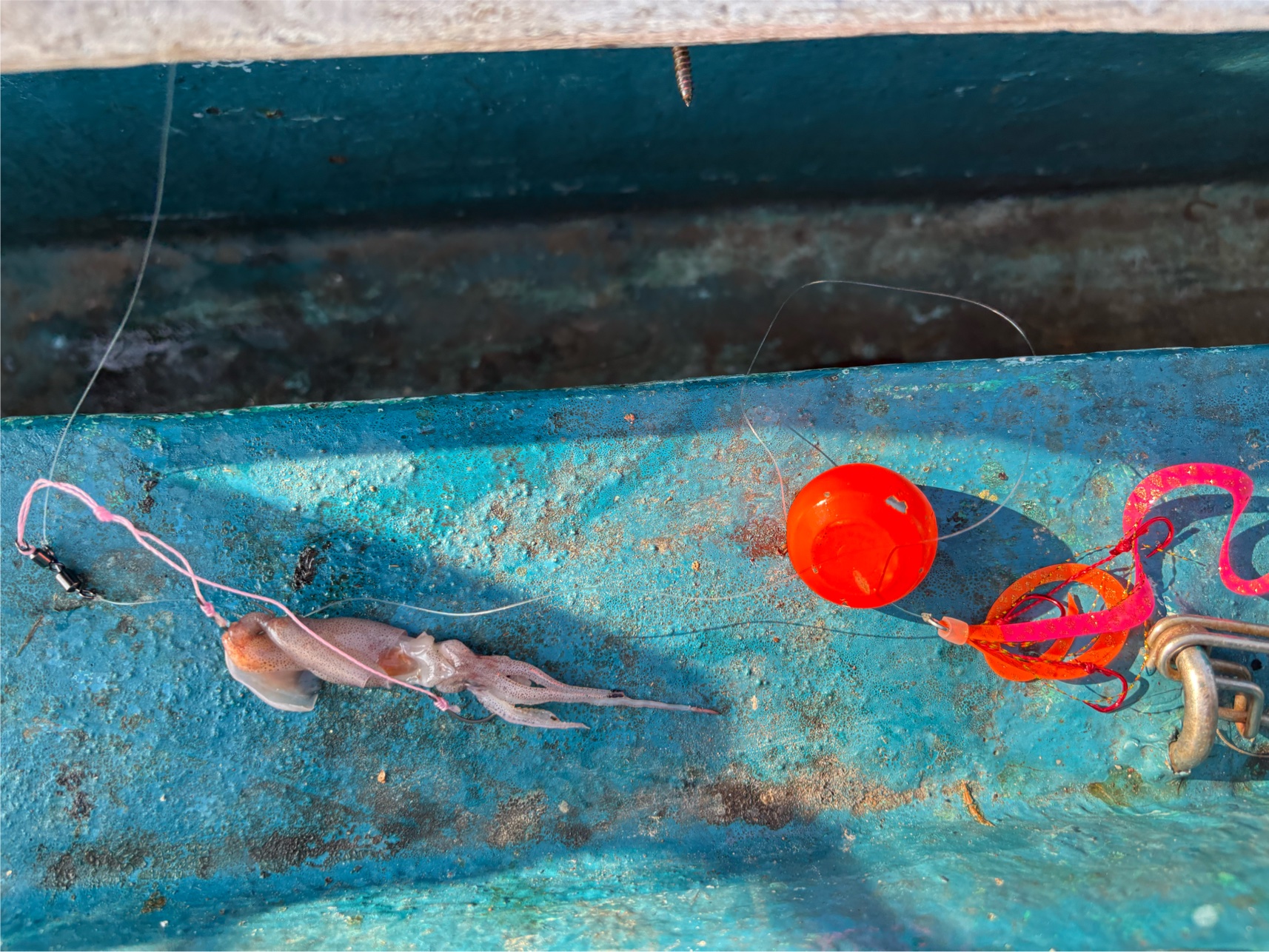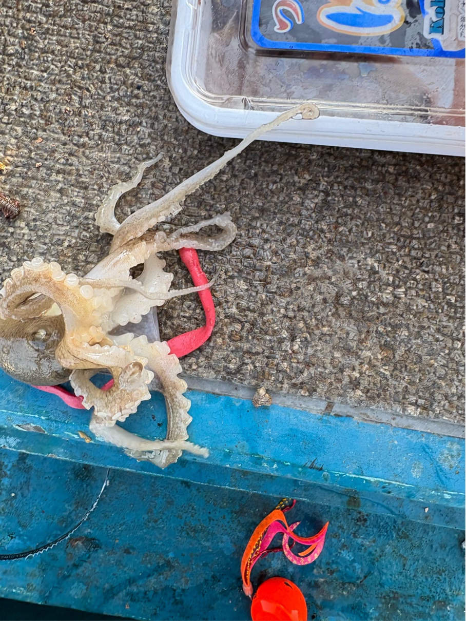 ほとんどが考案リグのホタルイカに食い付いてきましたが、1匹だけネクタイ側に青イソメとホタルイカを付けた3本針に食い付いてきました!