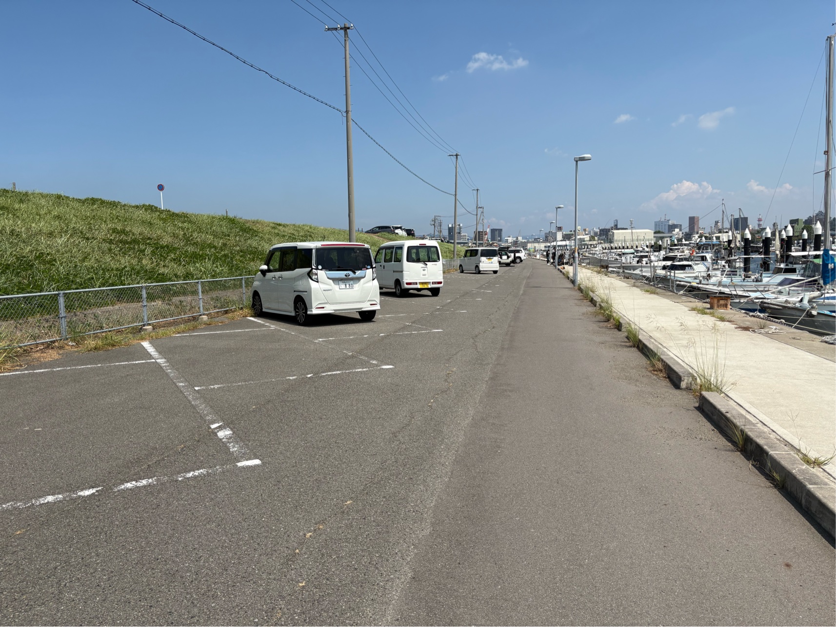 そして乗船場の目の前に停めれるスペースがありますので、一旦荷物を降ろして、駐車場は南側の土手に数台停めれるようになっています。