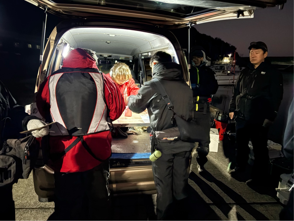 先輩達と合流して車のトランクで受付用紙に氏名、連絡先等を記載して、受付で乗船料11000円をお支払いします。