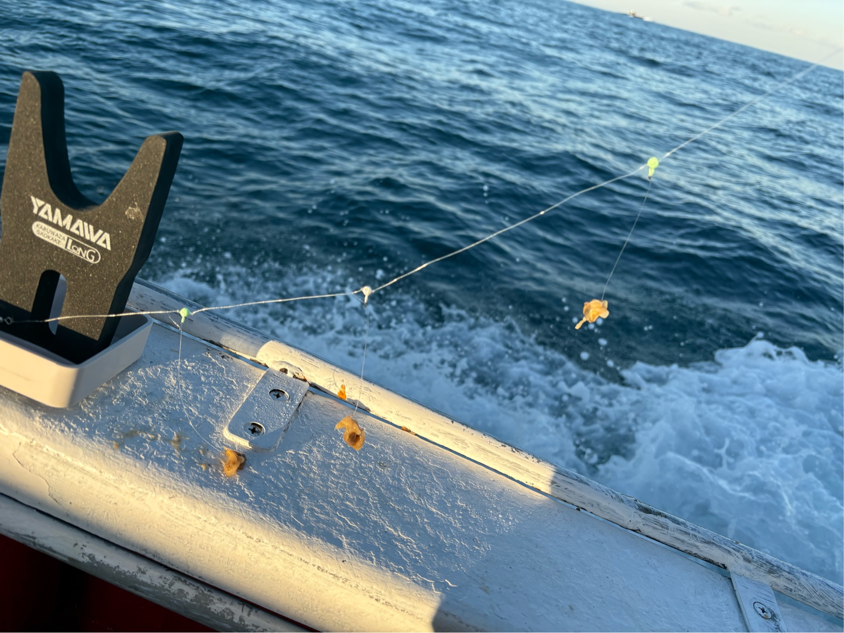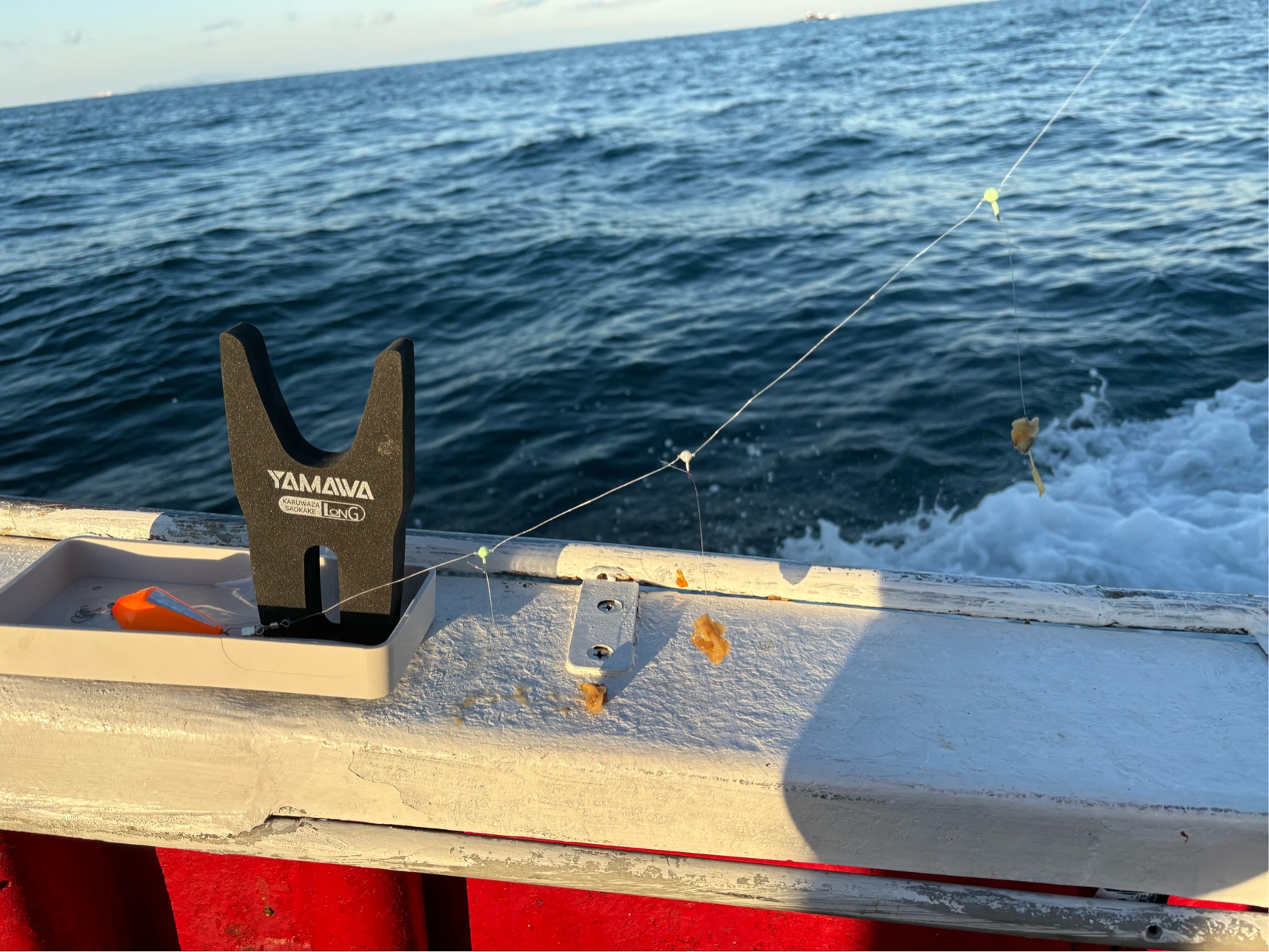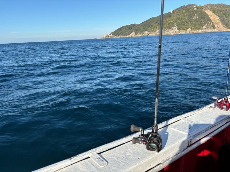 水深は30m〜40前後のかけ上がりを狙い、根掛かりしないために常に船長が水深と棚をアナウンスしてくれますので有難いですね!