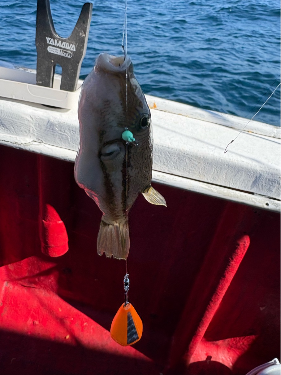 すると、何と一投目から先輩が早掛けで本命のカワハギゲットしました❗️