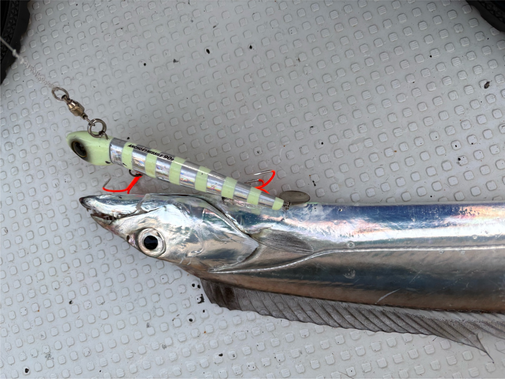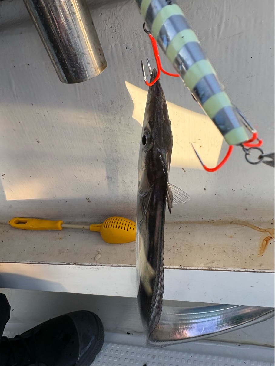 意外に引きが強く、指4本サイズの良型太刀魚が釣れました🤩