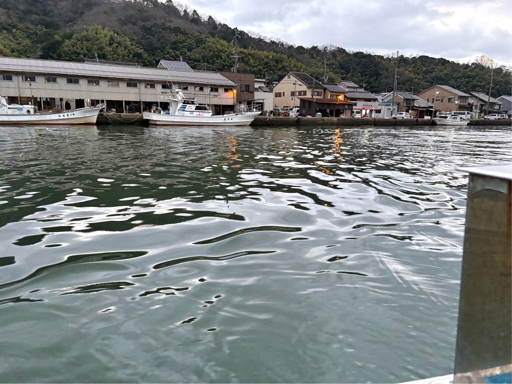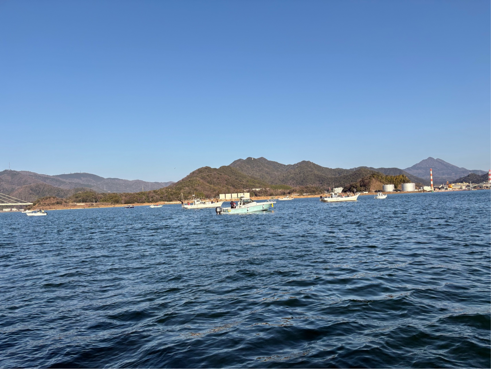 タチウオポイントは舞鶴港内なので、波も静かで船もたくさん近くにいます。