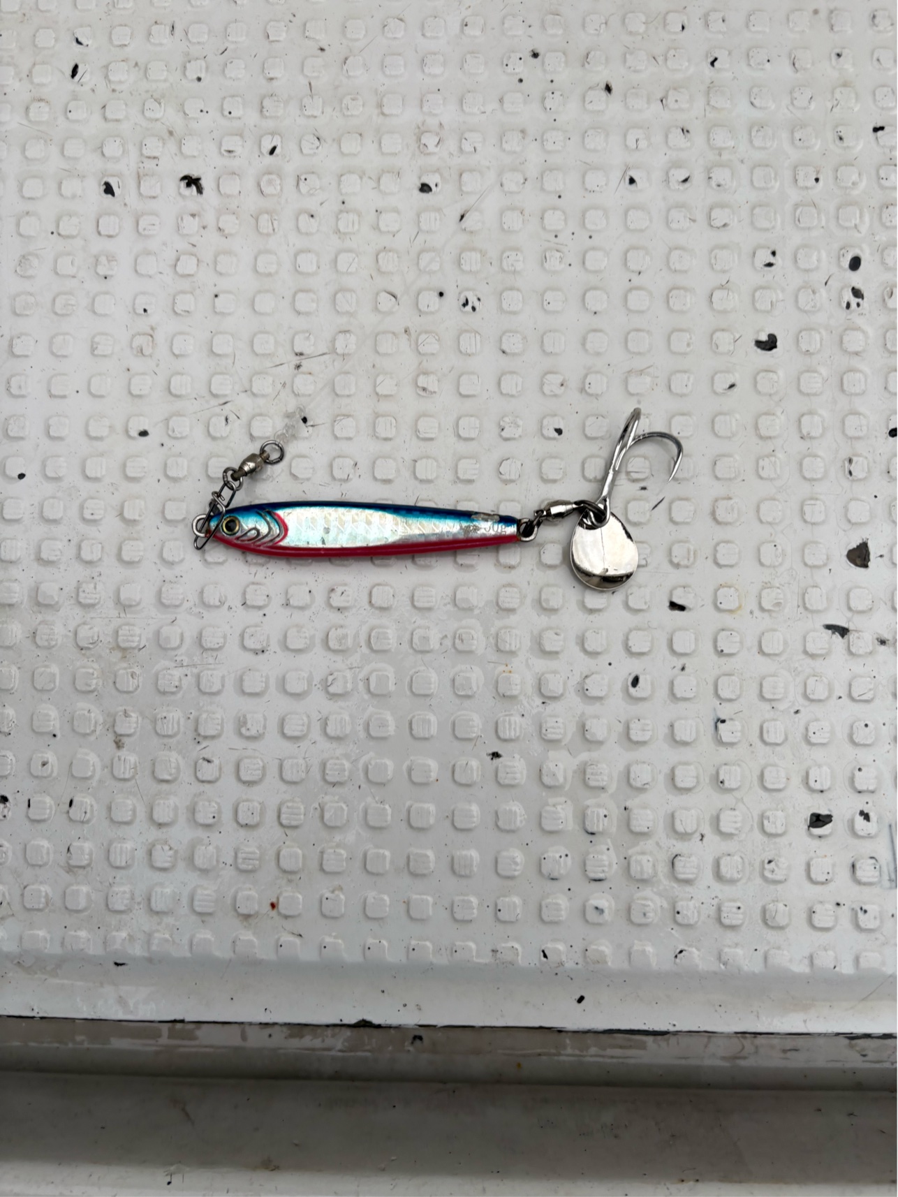 ブレードジギングでボトムから上層まで巻き速度を早めたり、止めたりと、やりましたがサワラからのコンタクトはありません。