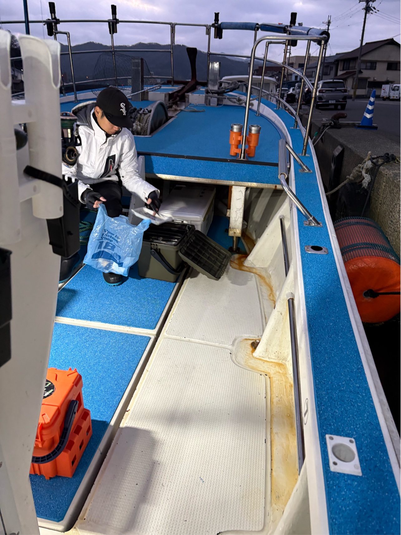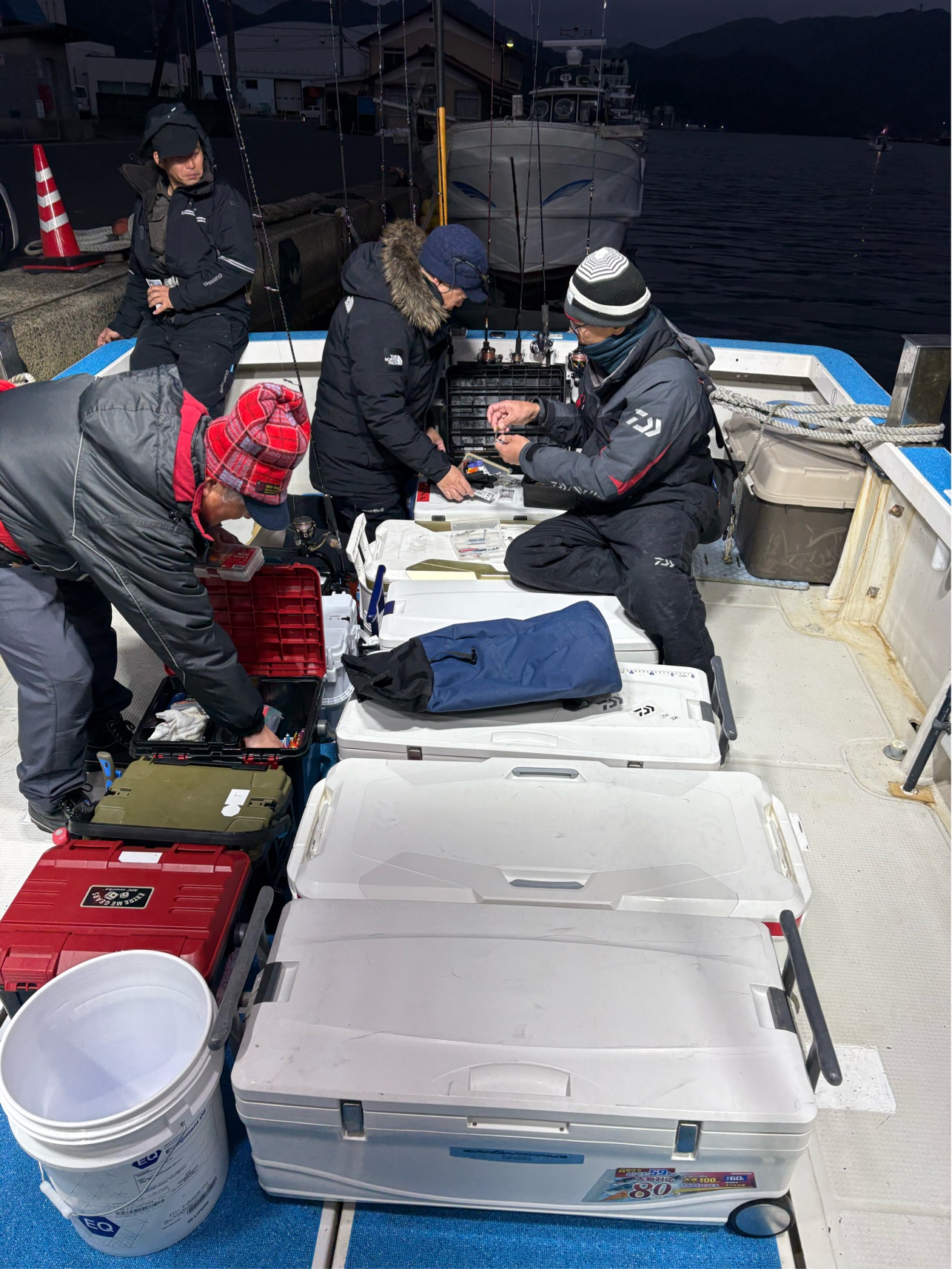 船にはクーラーは持ち込めますが、各自大型クーラーなので、釣りスペースが確保出来るように置きます。