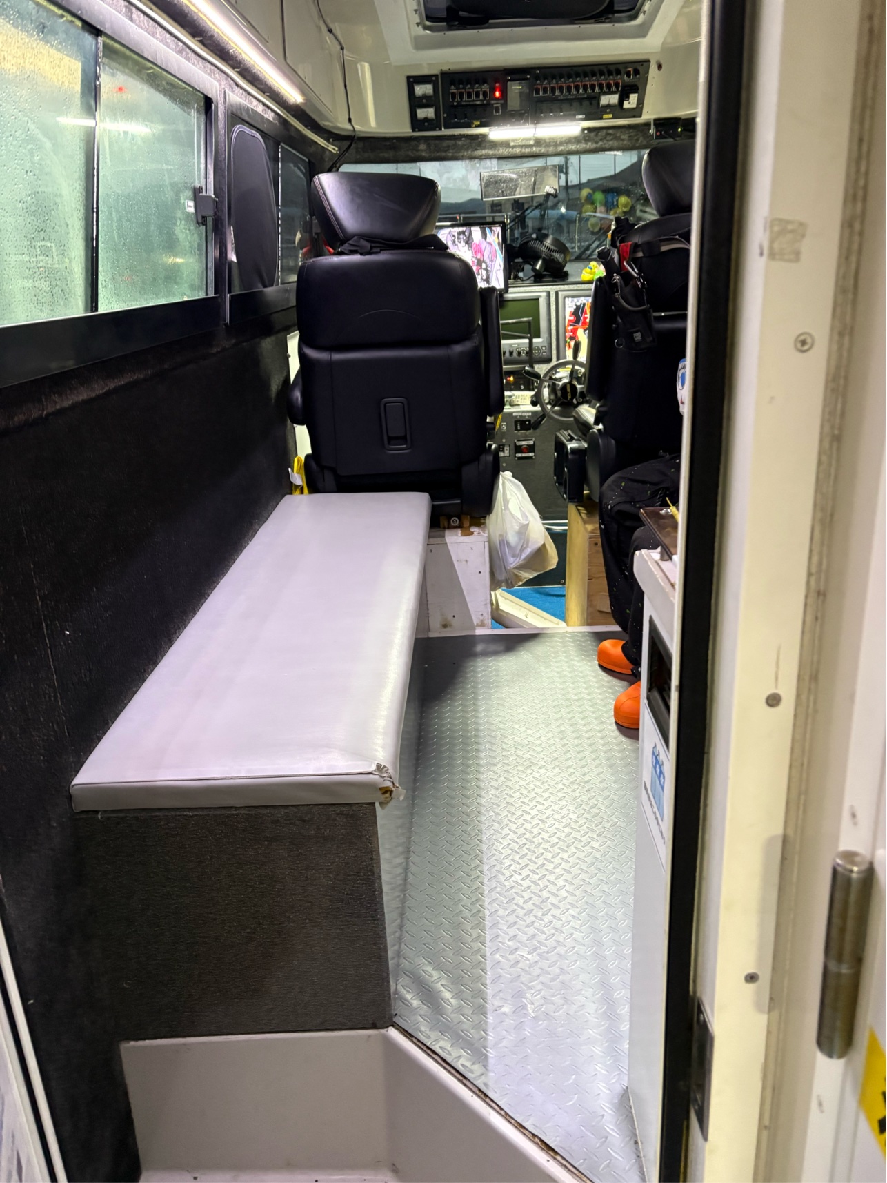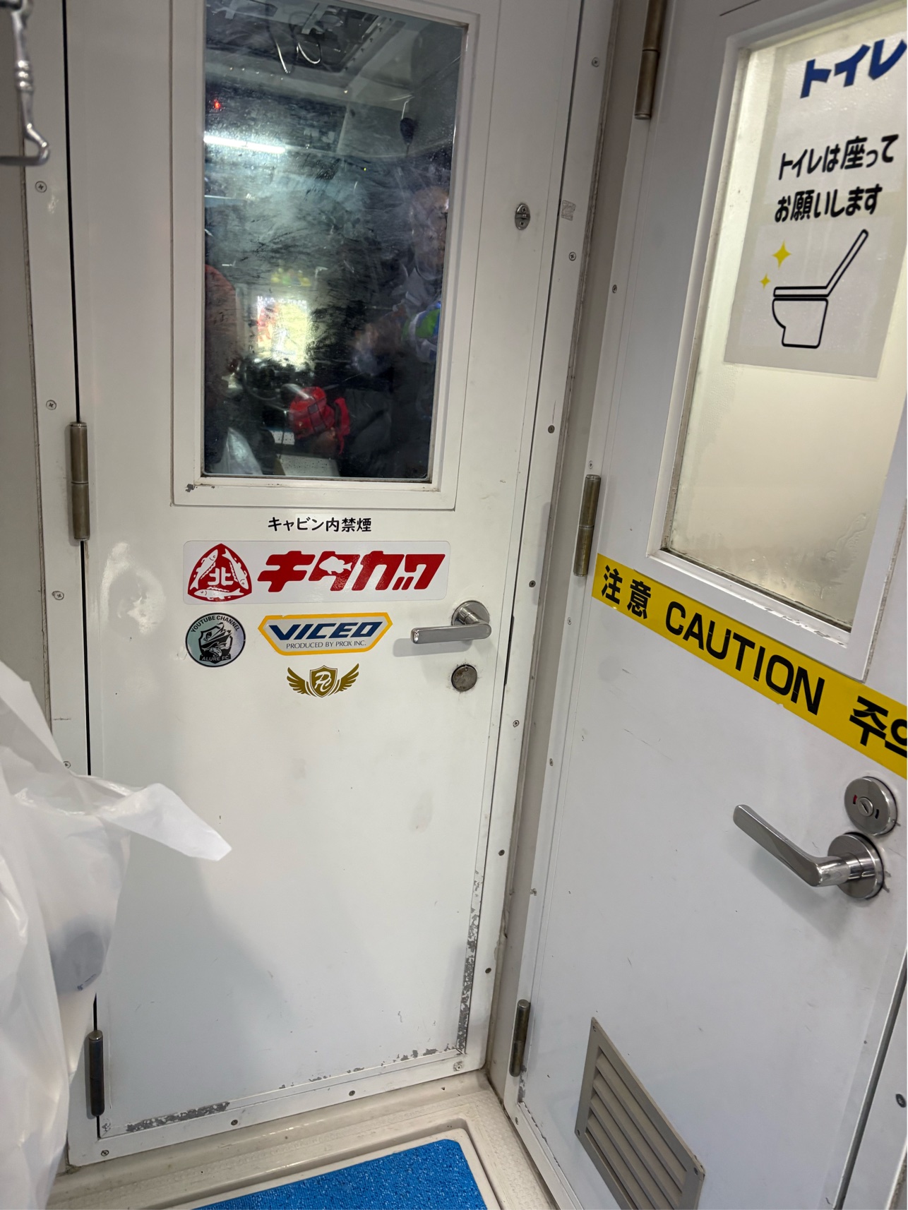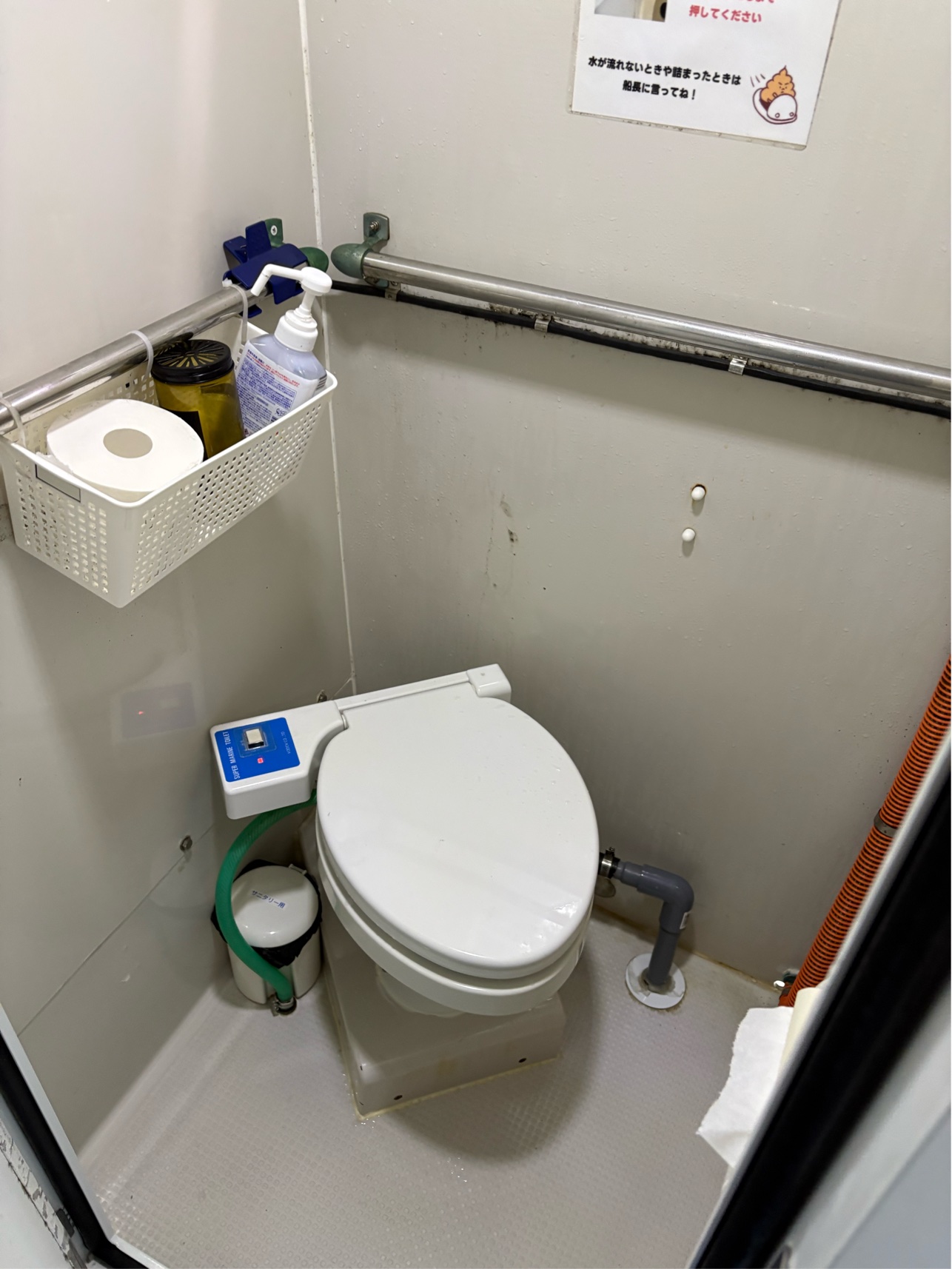 キャビンも広くて6人くらい座れて、レンジ、湯沸かしポット、エアコン、水洗トイレがあります。
